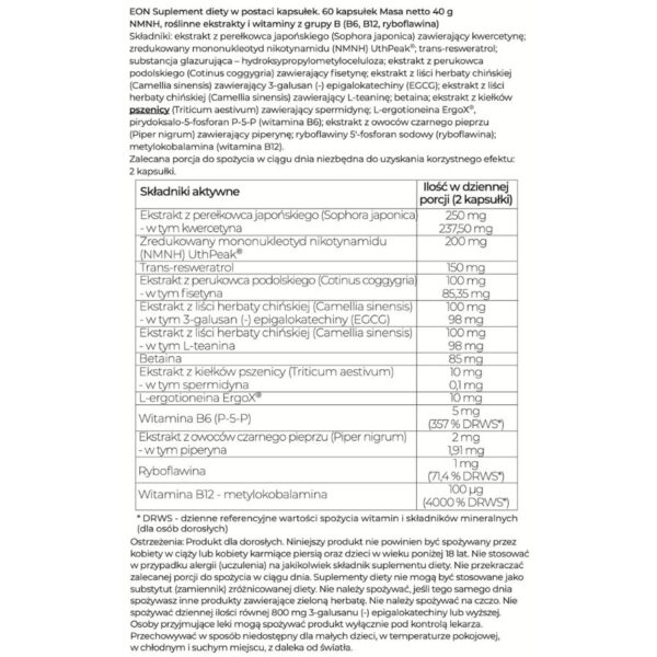 Nasza zaawansowana formuła suplementu diety opiera się na zredukowanym NMNH, który wspiera naturalne procesy regeneracyjne w organizmie. Produkt ten powstał z połączenia najnowszych odkryć naukowych oraz potężnych właściwości roślinnych ekstraktów, oferując wszechstronne korzyści dla zdrowia fizycznego i umysłowego.