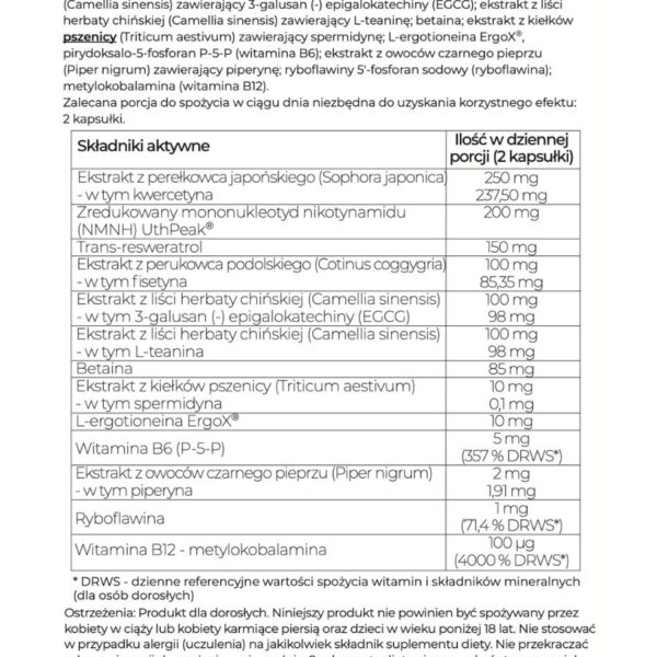 Ten innowacyjny suplement diety anti-aging zawiera zaawansowaną formułę NMNH, wspierającą młodość i zdrowie na poziomie komórkowym.